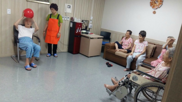 어르신들의 신체활동 프로그램의 하나로 공놀이가 있습니다.